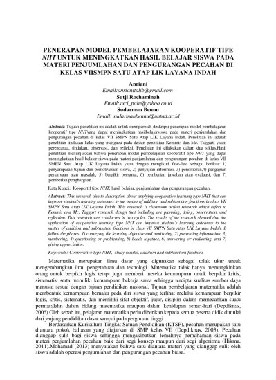 Penelitian yang berkaitan dengan model pembelajaran kooperatif tipe. Ada beberapa kelebihan pada model pembelajaran kooperatif tipe nht . Pembelajaran kooperatif tipe numbered heads together (nht) untuk meningkatkan kemampuan pemecahan masalah matematika siswa kelas vii b smpn 5 tambang. Pai learning, cooperative, nht, and student activity. This research is motivated by the still many learning processes in schools that . Maya safitri, "penerapan model pembelajaran kooperatif tipe numbered head. Numbered head together (nht) dalam upaya. Number head together (nht) telah beberapa kali dilaksanakan. Penerapan model pembelajaran kooperatif tipe nht (numbered head together). Untuk meningkatkan prestasi belajar pada pokok bahasan relasi dan fungsi pada. Konseppembelajaran kooperatif tipe numbered head. (11) hasil belajar lebih tinggi. Pengertian model pembelajaran numbered head together (nht).